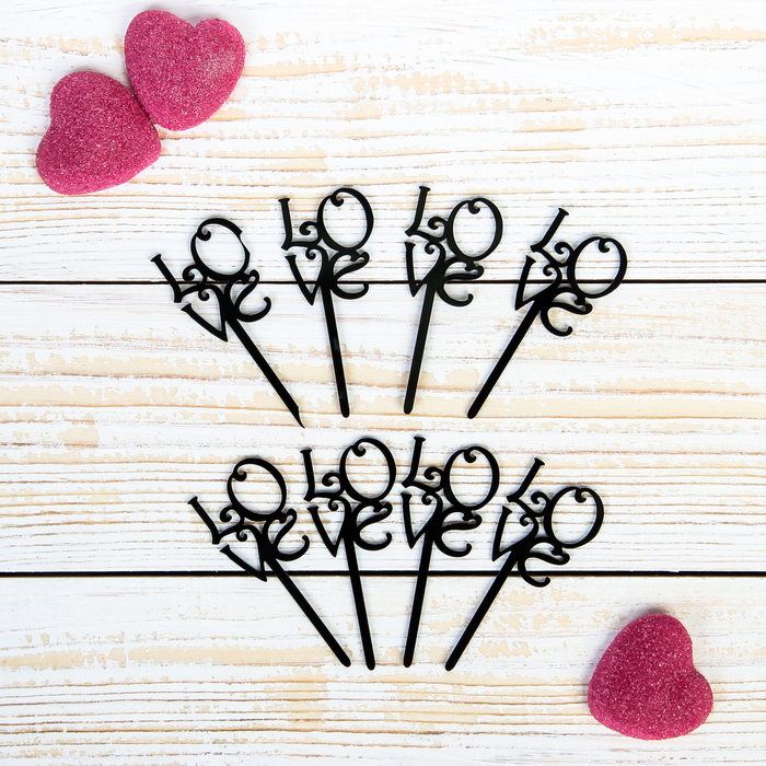 Топпер на пирожное "Любовь" 8 шт, цвет черный