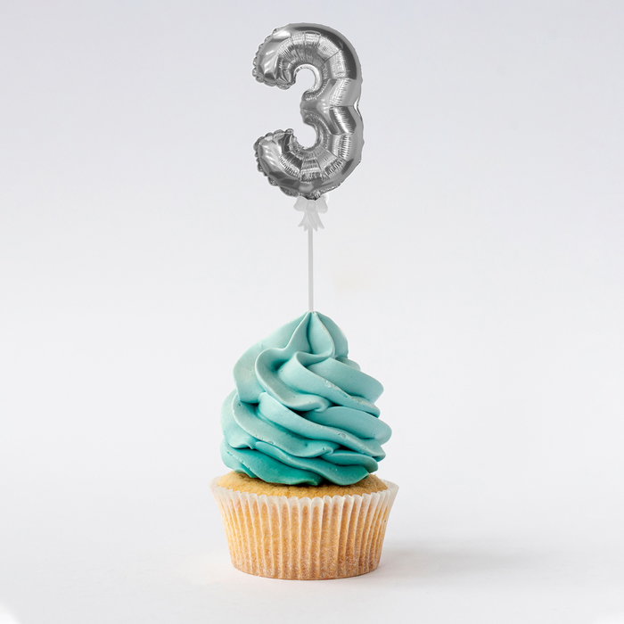 Цифра-топпер «3» с палочкой, серебряный
