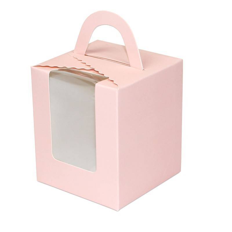 Коробка на 1 капкейк бежевая с окном домик
