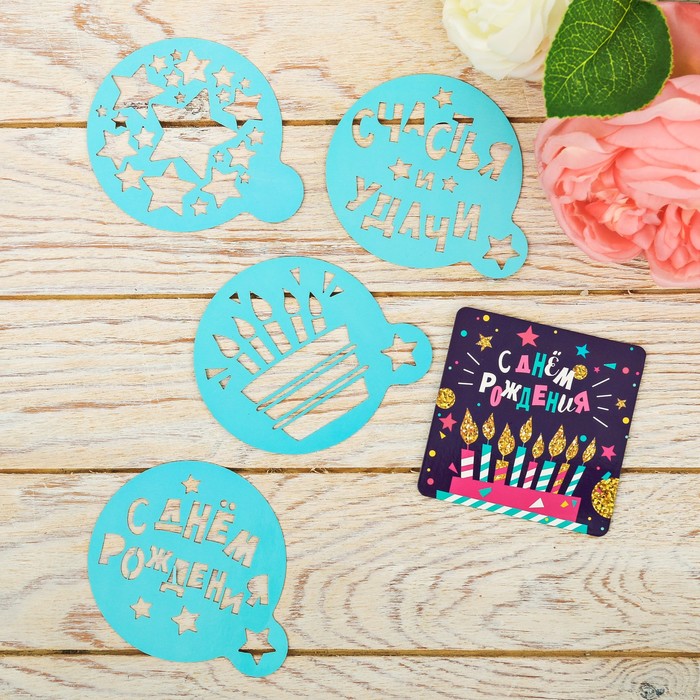 Набор магнит + трафареты 4 шт "С Днем Рождения", 14,5 х 10 см