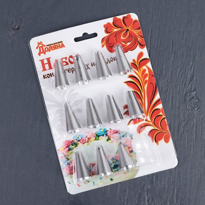 Набор насадок кондитерских Доляна, d=1,8 см, 12 шт, адаптер, форма МИКС