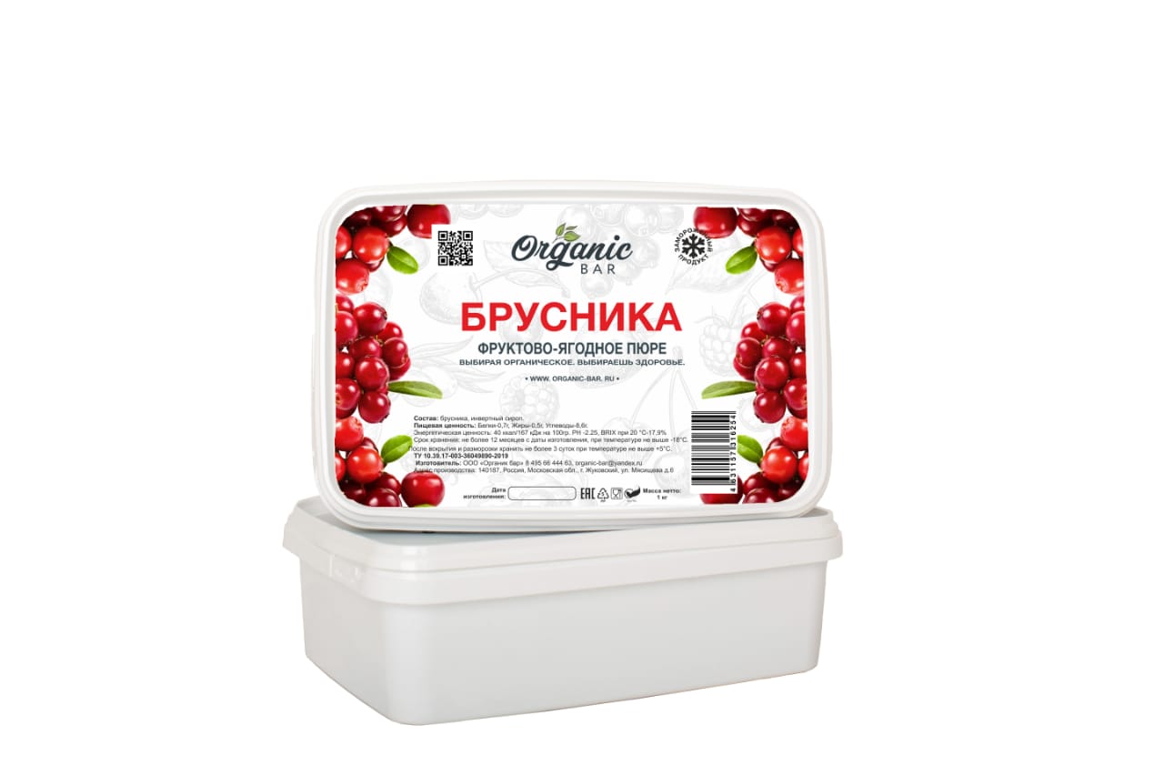 Пюре Organic-bar брусника 0,2 кг замороженное