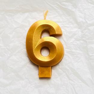 Свеча для торта восковая "Грани", "Цифра 6", золото100 руб.Свечи изготовлены вручную из 100% пчелиного воска и добавления красителей.Высота - 7,5 см