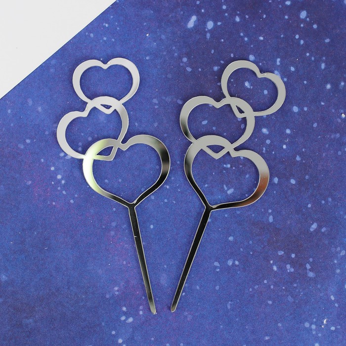 Топпер "Сердца" набор 2 шт, цвет серебро