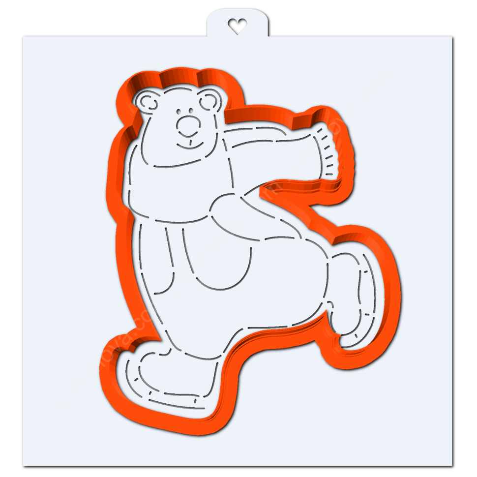 Вырубка с трафаретом Белый мишка на коньках 9*11 см